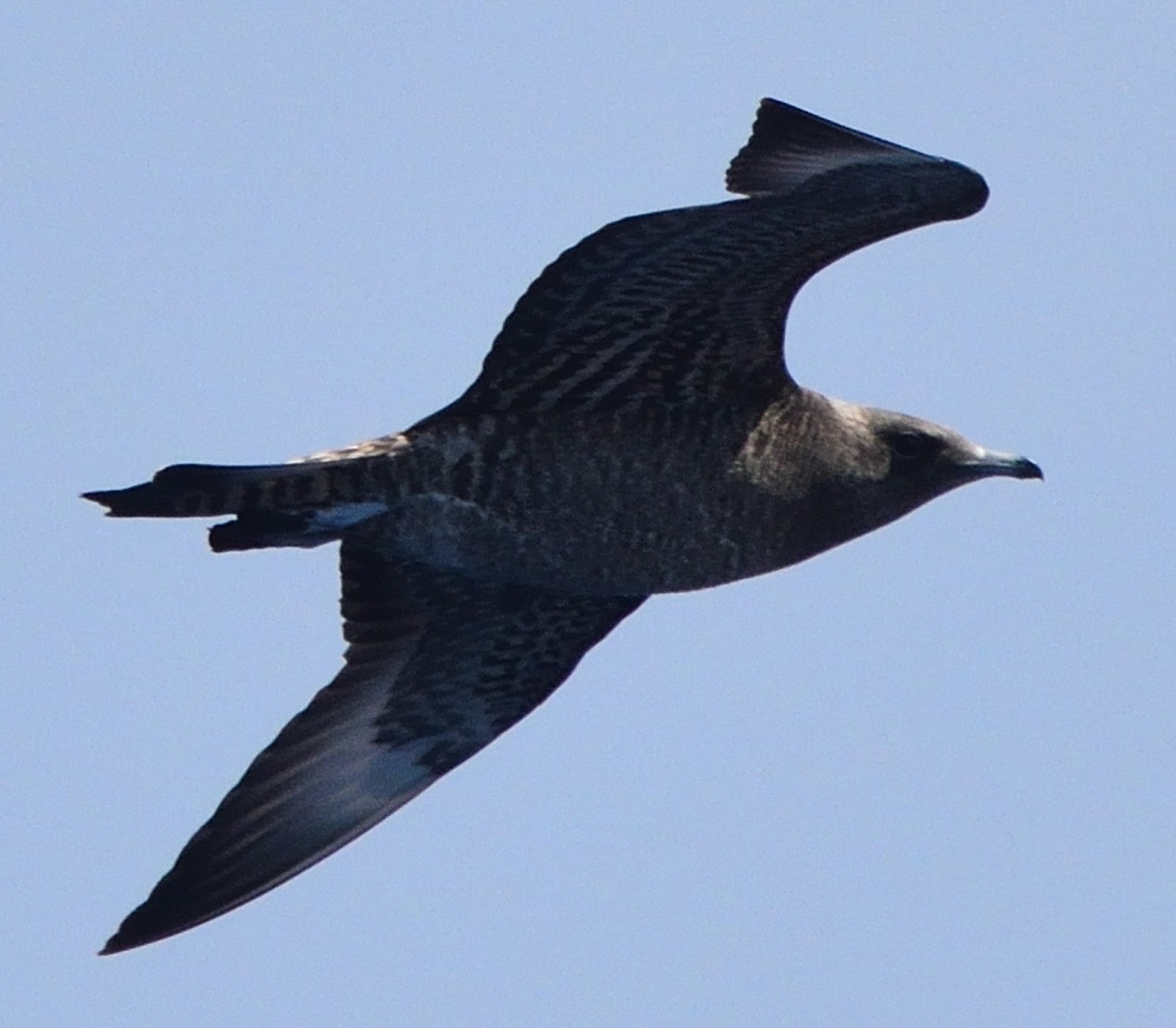 These two marks made us put the bird into the Parasitic column. These fieldmarks backed up what appeared to be a small-headed look to the bird, a good but relatively subjective fieldmark, and the more solid but-not-always-easy-to-see number of white primary shafts..